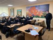 Під час занять поліцейський розповів про особливості несення служби патрульної поліції та акцентував увагу на дотриманні прав і свобод людини й громадянина в аспекті реалізації таких принципів, як принцип найвищої соціальної цінності людини (ст. 3 Конституції України), законності (ст. 19 Конституції України) та рівноправності (ст. 21, 24 Конституції України), а також принципів, що є невід’ємними складовими засад конституційного ладу України.