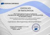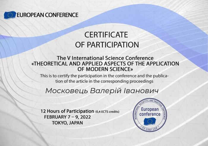 Науковці університету – завідувач кафедри соціально-гуманітарних дисциплін доктор історичних наук, професор, заслужений працівник освіти України Володимир Греченко та старший науковий співробітник науково-дослідної лабораторії з проблем протидії злочинності кандидат соціологічних наук, доцент Валерій Московець – взяли участь у V Міжнародній науково-практичній конференції «Теоретичні та прикладні аспекти застосування сучасної науки» («Theoretical and applied aspects of the application of modern science»), що відбулася у Токіо, Японія. Вчені подали тези доповіді ««Немотивована» злочинність неповнолітніх», що була розміщена в матеріалах конференції разом з іншими науковими публікаціями з кримінології, юридичної психології та соціології злочинності. У конференції взяли участь 117 учасників з різних країн світу. За підсумками конференції оприлюднено збірник тез доповідей.