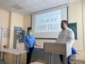 Старша викладачка кафедри іноземних мов факультету № 4 Любов Русанова та викладачка цієї ж кафедри Валентина Кочина разом із керівником груп компанії «Меджиком ЮКей Лімітид» (Magecom UK Limited) Владиславом Опухлим провели для курсантів третього курсу факультету № 4 бінарне заняття «Захист інформації».