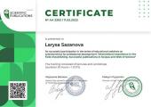 За результатами участі у вебінарах Лариса Сазанова отримала сертифікат, нові знання та навички науково-дослідної роботи.
