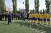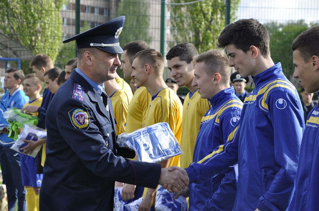 Ректор Харківського національного університету внутрішніх справ Валерій Сокуренко привітав гравців університетської команди «Універ-Динамо» з перемогою у турнірі з міні-футболу на Кубок імені Віктора Фоміна. Він побажав їм подальших успіхів і передав гравцям по два комплекти нової футбольної форми.