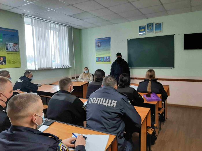 Старша викладачка кафедри трудового та господарського права факультету № 2 ХНУВС Тамара Яценко та старший сержант полку поліції особового призначення (ППОП) Дмитро Армаш для слухачів факультету № 1 провели бінарне заняття з навчальної дисципліни «Екологічне право» за темою «Роль МВС в забезпеченні дотримання законодавства щодо права власності на природні об'єкти».