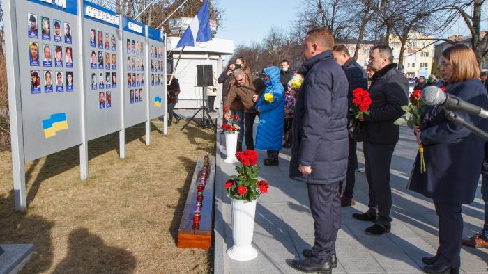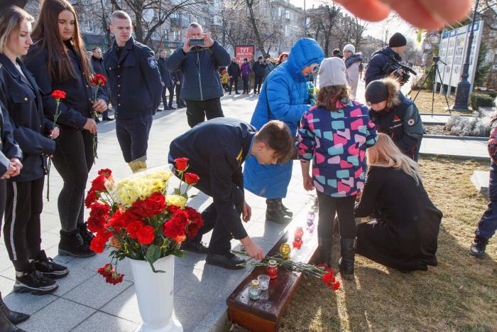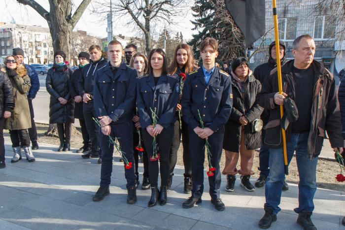 З 18 по 20 лютого 2015 року на Майдані Незалежності загинуло понад 100 протестувальників, яких сьогодні називають Небесною Сотнею. Присутні хвилиною мовчання вшанували пам'ять тих, хто пожертвував своїм життям, захищаючи права, честь і гідність українського народу, та поклали квіти до пам’ятника борцям за свободу і незалежність нашої держави.