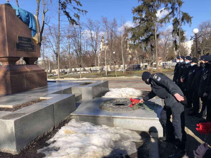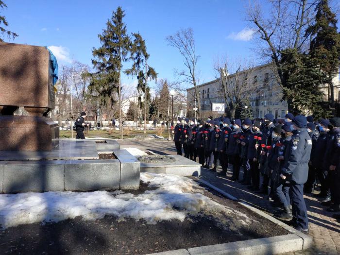 У День вшанування подвигу учасників Революції гідності та увічнення пам'яті Героїв Небесної Сотні працівники, курсанти, студенти Харківського національного університету внутрішніх справ вшанували пам'ять героїв, які віддали своє життя за свободу та європейській вибір громадян України та поклали квіти до пам'ятника Героям Небесної Сотні.