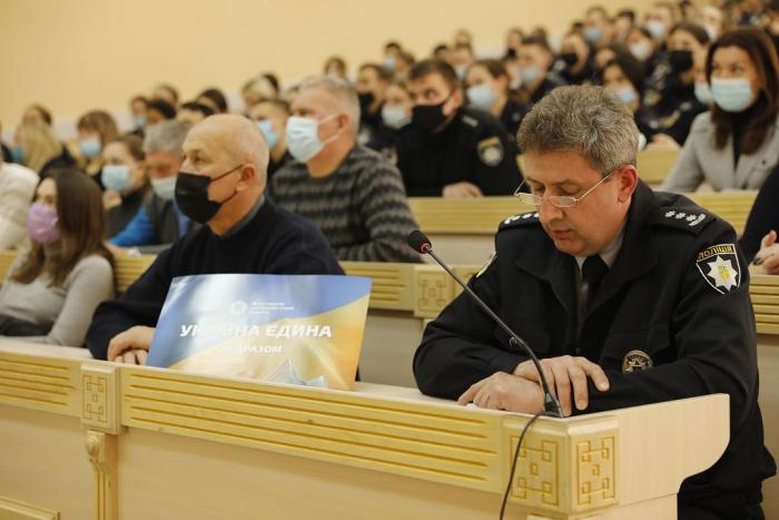 Онлайн-захід до Дня єднання «Міст єдності – Україна єдина» відбувся, коли вся Україна відзначає День рідної мови. Його учасниками стали представники керівного складу, науково-педагогічні працівники, курсантсько-студентська молодь вишів системи МВС України – Харківського національного університету внутрішніх справ, Донецького державного університету внутрішніх справ, Національної академії Національної гвардії України, Національного університету цивільного захисту України та Національної академії Державної прикордонної служби України імені Богдана Хмельницького.