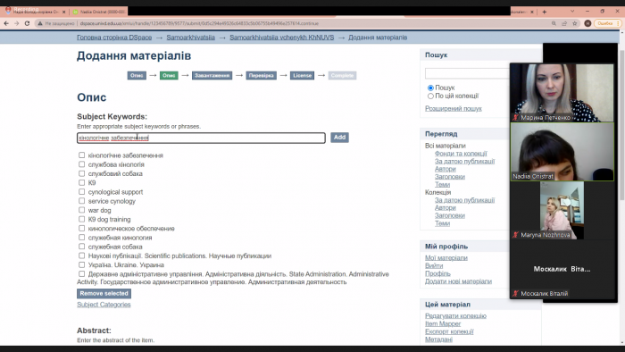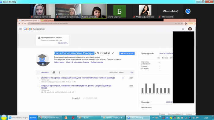Науковою бібліотекою Харківського національного університету внутрішніх справ проведено онлайн навчальне заняття для педагогічних, науково-педагогічних, наукових представників структурних підрозділів – Кременчуцького льотного коледжу та Сумської філії – за темою «Ведення та наповнення авторських профілів науковців у єдиному міжнародному реєстрі унікальних ідентифікаторів вчених ORCID та у пошуковій системі Google Академія. Правила самоархівування наукових робіт в інституційному репозитарії Харківського національного університету внутрішніх справ (KhNUIAIR)».