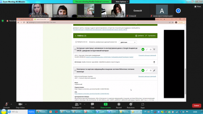Під час онлайн-заняття директорка наукової бібліотеки Олена Музика та начальниця відділу електронних ресурсів і сервісів бібліотеки Надія Оністрат надали відповіді на всі актуальні запитання учасників.