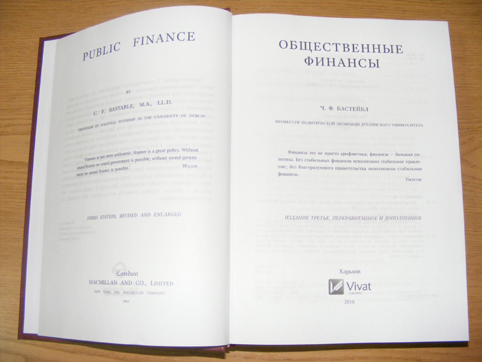 Завдяки одному з благодійних фондів Харкова, до університетської бібліотеки Харківського національного університету внутрішніх справ надійшло унікальне видання Чарльза Френсіса Бастейбла «Суспільні фінанси», яке розкриває складний, але захоплюючий світ економіки. Видання професора політичної економіки Дублінського університету знайомить читача із тонкощами англійської фінансової політики, французькими податками на спадщину, реформою оподаткування в Австрії, тимчасовим митом у США тощо. Тираж видання складає лише 1000 примірників.