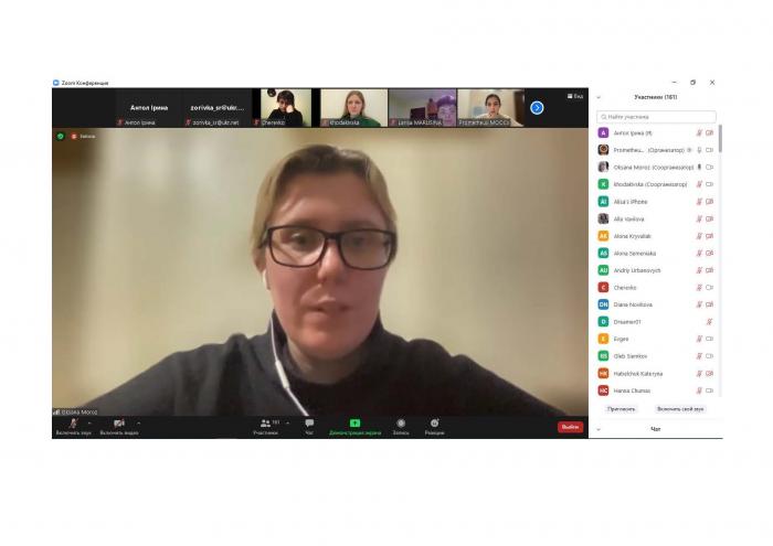 Доцентка кафедри правового забезпечення підприємницької діяльності та фінансової безпеки факультету № 6 Ірина Антол взяла участь у вебінарі «Інформаційна гігієна під час війни» через платформу Zoom.