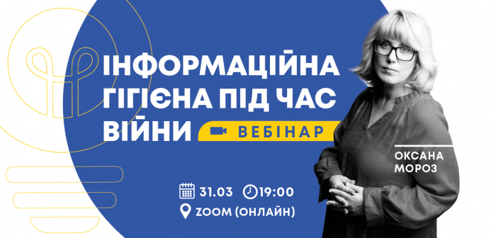 Вебінар провела Оксана Мороз - засновниця ініціативи з інформаційної гігієни «Як не стати овочем», спеціалізується на аналізі та формуванні інформаційного поля, а також поведінки людей у ньому. Вона також є авторкою та ведучою радіоблогу «Вірю не вірю» на Радіо «Культура», а також книг «Нація овочів?» та «Боротьба за правду».
