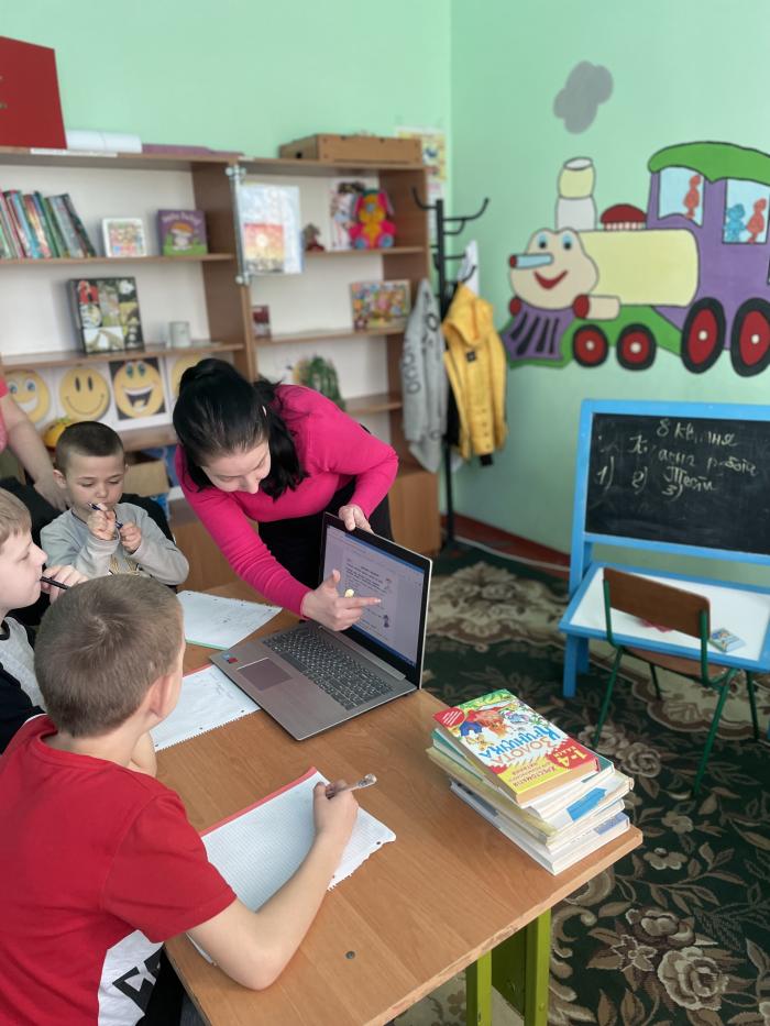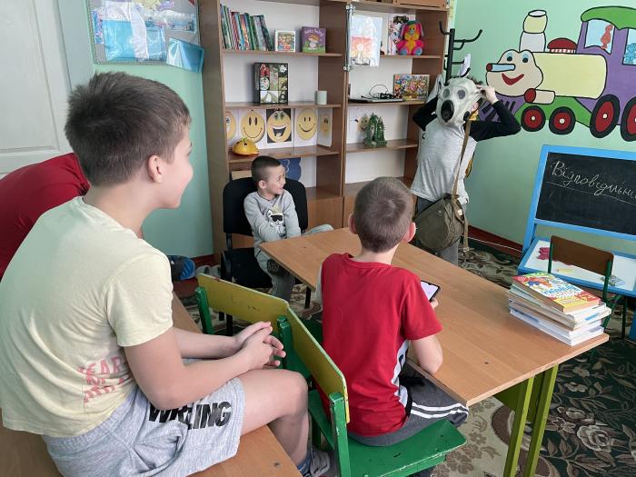 Викладач кафедри поліцейської діяльності та публічного адміністрування факультету № 3 Альона Бахаєва проводить заняття з внутрішньо переміщеними дітьми, які були вимушені залишити свої домівки у Харкові. Окрім проведення роз'яснювальних бесід з дітьми щодо їх прав та обов'язків, представниця кафедри проводить також ігрові заняття з дошкільнятами.