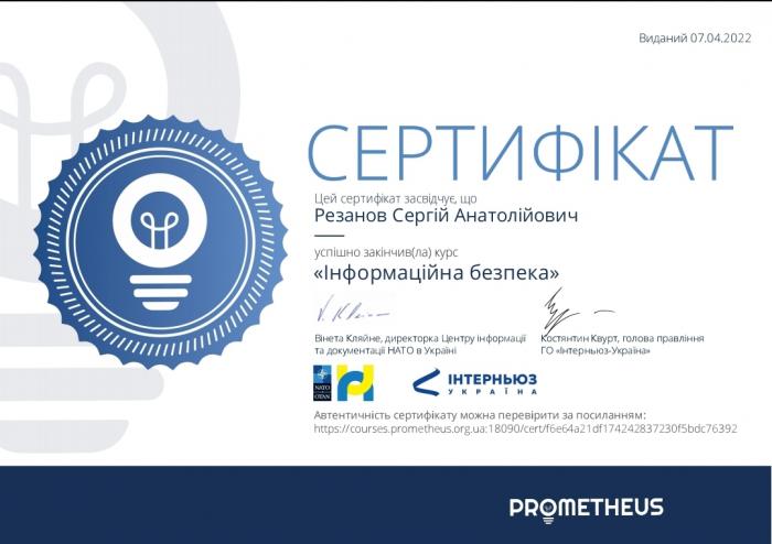 Науково-педагогічний склад кафедри поліцейської діяльності та публічного адміністрування факультету № 3 пройшов онлайн-курс «Інформаційна безпека» на платформі Prometheos.