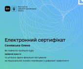 Професор кафедри правоохоронної діяльності та поліціїстики факультету № 6 доктор юридичних наук, професор Олена Синявська пройшла онлайн-курс «Цифрові юристи» на платформі цифрової освіти «Дія» та отримала відповідний сертифікат. Курс створений для надання відповідей - чому право та IT почали зближуватися. Слухачів ознайомили з юридичними професіями майбутнього (лігал-інженер, кібер-слідчий, медіа-поліцейський, мережевий юрист і т. д). Розкритіо було питання алгоритмів у праві, чат-ботів, як інструментів вирішення типових завдань в діяльності юриста, і які саме шаблони юридичних документів можна створити за допомогою них. Учасників курсу ознайомили з технологіями Blockchain та прикладами їхнього застосування в юридичній діяльності. Було розʼяснено, що таке смарт-контракти та як на практиці замінити паперові стандартні угоди смарт-контрактами. Навели приклади українських та світових юридичних стартапів.