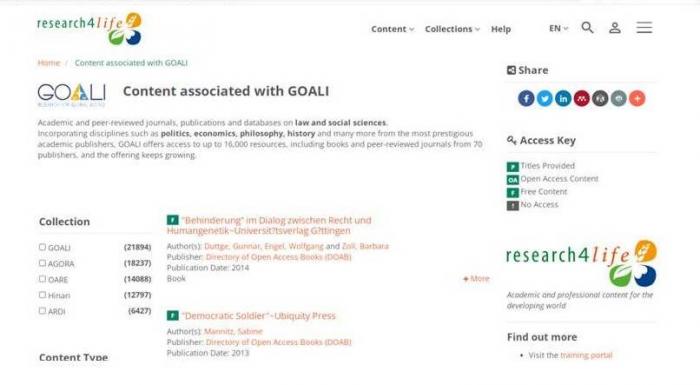 • GOALI – спеціалізована бібліотека у сфері права та суспільних наук, включаючи політичні науки, економіку, філософію, історію та ін.