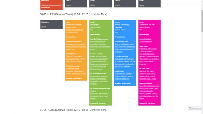 На конференції доповідачі поділяться своїми дослідженнями та знаннями з обраної у своїй галузі знань теми. Учені, науковці, дослідники та студенти, які постраждали від війни в Україні, та вчені, практики, представники підприємств і науково-дослідних установ та організацій з Німеччини зберуться разом, щоб забезпечити тривалий академічний обмін та побудувати нові контакти мережі у науковій сфері.