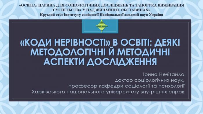 Професорка кафедри соціології та психології Ірина Нечітайло взяла участь як доповідач і диспутант у засіданні Круглого столу Інституту соціології Національної академії наук України «Освіта: царина для соціологічних досліджень та запорука виживання суспільства у надзвичайних обставинах».
