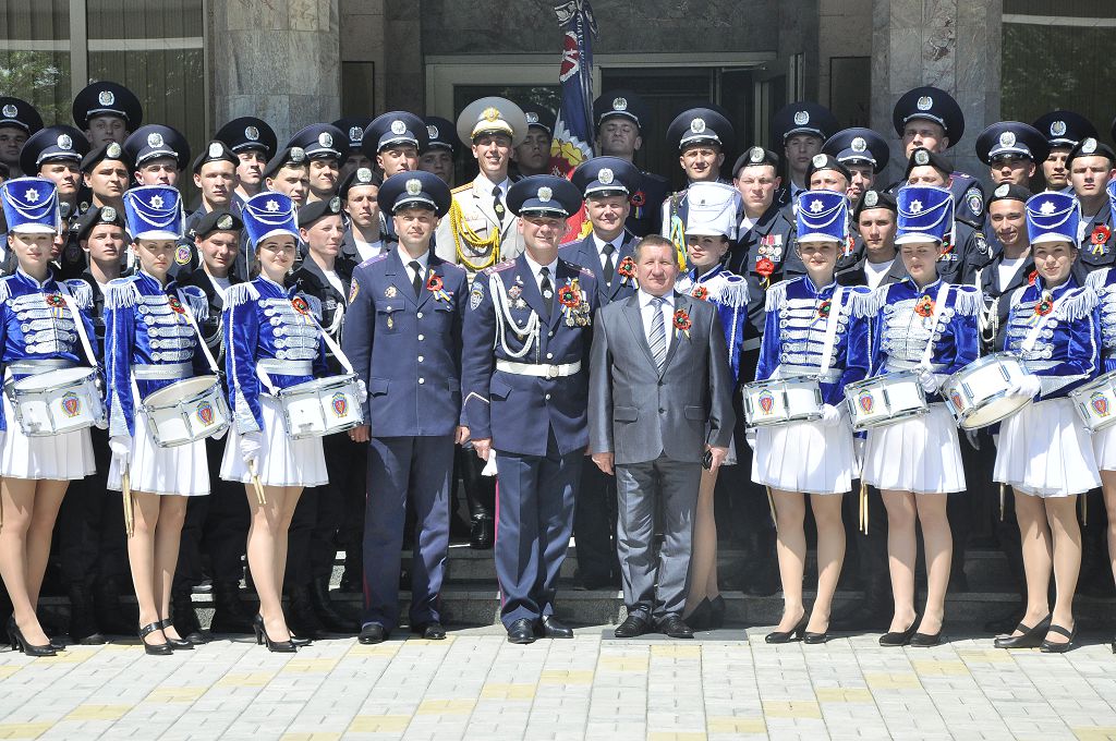 Ректор університету Валерій Сокуренко привітав із Днем пам’яті та примирення і Днем перемоги над нацизмом у Європі курсантів Харківського національного університету внутрішніх справ і сфотографувався на пам'ять з учасниками урочистих заходів – парадним розрахунком університету, прапороносною групою та ансамблем барабанщиць.