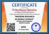 Так, завідувач лабораторії Костянтин Бугайчук та науковий співробітник лабораторії Наталія Прібиткова взяли участь у наступних міжнародних науково-практичних конференціях: «Modern Research In World Science» (17-19 квітня, Львів) та «Innovative trends of science and practice, tasks and ways to solve them» (26-29 квітня, Афіни, Греція).