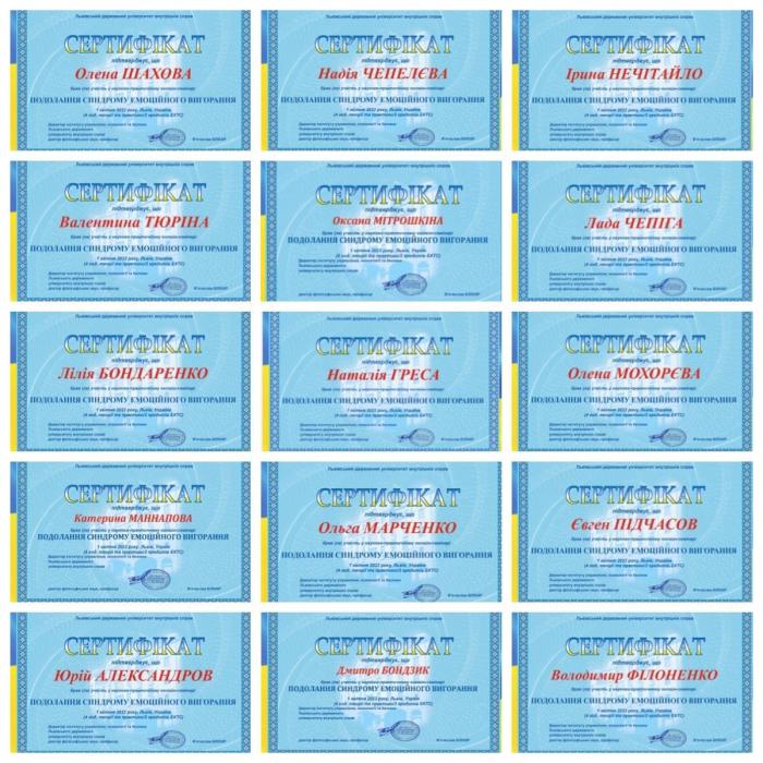 Захід був надзвичайно цікавим та корисним. Під час майстер-класів «Емоційне вигорання», «Життєва енергія: профіль витрат та пошук балансу в умовах воєнного стану» та ін. учасники отримали важливі теоретичні знання і навички, засвоїли нові техніки з протидії емоційному вигоранню, зокрема, спричиненому воєнними подіями. Всі учасники отримали сертифікати.