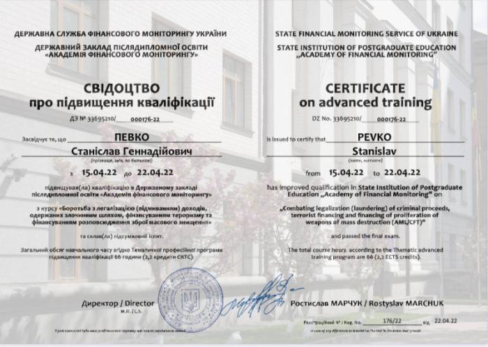 Науково-педагогічний склад кафедри фундаментальних та юридичних дисциплін факультету № 6 - доценти Станіслав Певко, Олександр Железов, Кристина Кисильова та інші працівники кафедри на чолі із завідувачем Юрієм Холодом - взяли участь в онлайн-навчанні за програмою підвищення кваліфікації з курсу «Боротьба з легалізацією (відмиванням) доходів, одержаних злочинним шляхом, фінансуванням тероризму та фінансуванням розповсюдження зброї масового знищення». За результатами навчання було складено іспит, учасники отримали сертифікати.