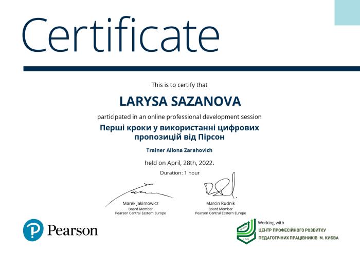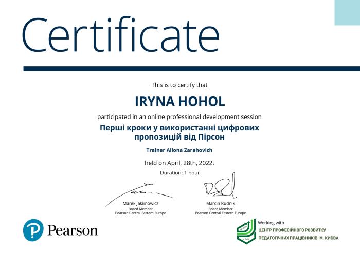 Завідувачка кафедри іноземних мов факультету № 4 Олена Статівка та викладачі цієї ж кафедри Ірина Гоголь, Валентина Кочина, Валентина Почуєва та Лариса Сазанова взяли участь у тренінгу «Перші кроки у використанні цифрових пропозицій від Пірсон», організованому Центром професійного розвитку педагогічних працівників м. Києва.