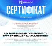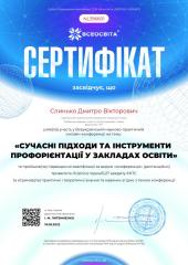 За результатами проходження підсумкового тесту Дмитро Слинько отримав сертифікат про підвищення кваліфікації. Набуті компетентності будуть використані в освітньому процесі.