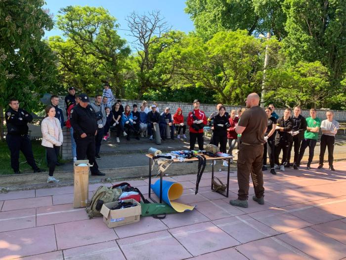 Курсанти відпрацювали техніки зупинки критичної кровотечі, відновлення дихання, проведення серцево-легеневої реанімації, відновлення кровообігу та вдосконалили навички первинної оцінки стану потерпілого й способи його евакуації.