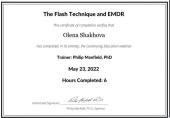 Ця техніка є частиною фази підготовки для роботи в методі EMDR та ефективна у зниженні рівня занепокоєння, пов'язаного з дуже болючими спогадами, іноді всього за десять-п'ятнадцять хвилин. Унікальність техніки полягає в тому, що людям, які уникають тривожних спогадів, пропонується спосіб їхньої переробки без необхідності ясно згадувати про них, що стає в нагоді при переробці травм насильства та втрат, якіих зазнають як дорослі, так і діти в Україні. Застосування техніки Flash мінімізує вегетативне збудження та захист людини, а також прискорює переробку негаттивних емоцій без сильних незручностей. За допомогою цієї техніки можна переробляти не просто окрему травму, а цілий кластер травм. Техніка легко переноситься людьми і може допомогти дітям і дорослим різного віку. Вона корисна при широкому спектрі скарг, включаючи занепокоєння, обсесивно-компульсивний розлад, легку та важку дисоціацію, депресію, втрату та багато іншого. Вона найбільш корисна для людей, які уникають повного доступу до спогадів, що сильно турбують.
