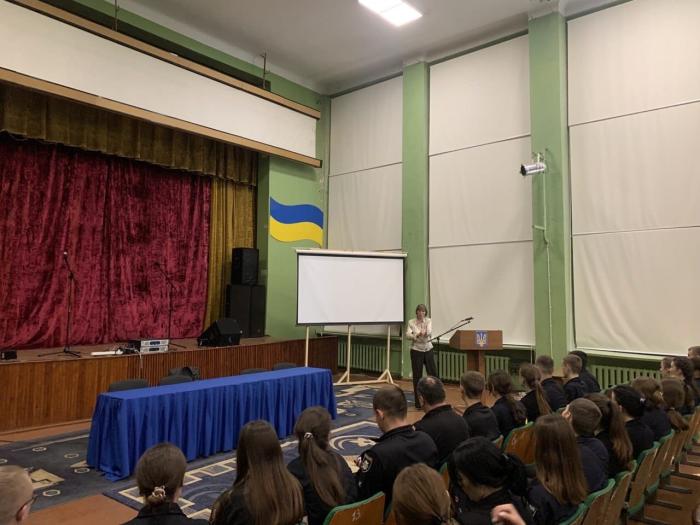 Відбулося бінарне заняття з курсантами 3 та 4 курсів факультету № 3, які здобувають освіту за навчальною програмою «Психологія» на тему «Домога людині в стресовій ситуації під час надзвичайних подій». Заняття провела практичний психолог опорного закладу «Хмельницька загальна освітня школа І-ІІІ ступенів» Кременчуцького району Катерина Стругайло.