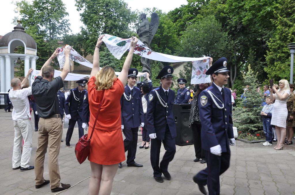 Ліцеїсти також попрощалися з Прапором ліцею і випустили в небо білих голубів, на щастя та гарну долю пройшли під вишитими українськими рушниками.