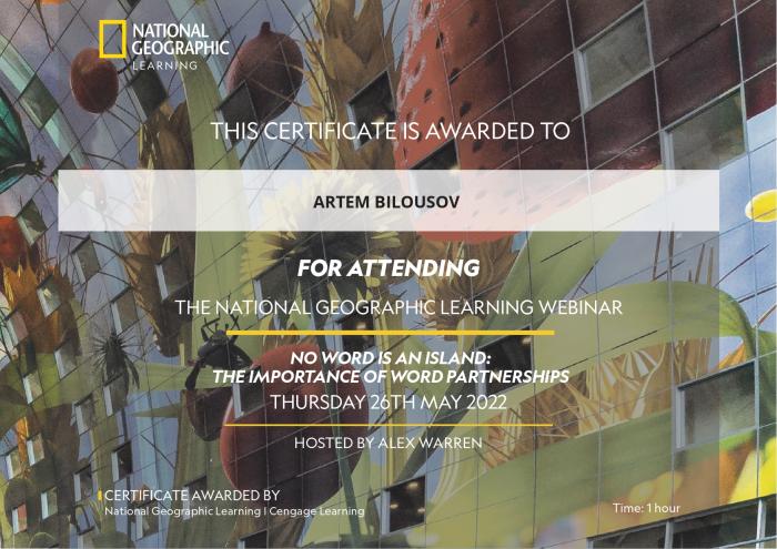Захід організований та проведений «National Geographic Learning» та її представником в Україні – компанією «Лінгвіст». З учасники вебінару поспілкувався висококваліфікований викладач і тренер з 15-річним досвідом викладання Алекс Воррен, який розповів про ефективні методи вивчення нової лексики. Такі методи допомагають розширити словниковий запас і зробити навчання цікавим. Спікер також говорив про актуальні питання візуальної грамотності, зокрема позитивний вплив малюнків і зображень на розвиток пам’яті та їх важливу роль в опануванні іноземної мови.