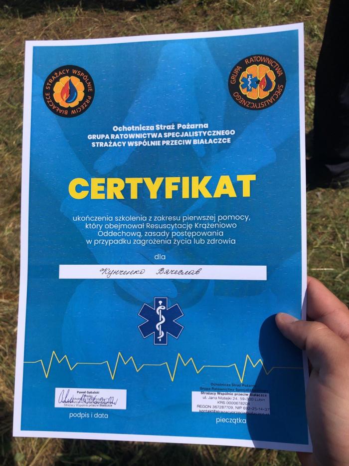 У тренінгу взяли участь курсанти та слухачі магістратури факультету № 1 університету. Групу очолив курсовий офіцер факультету старший лейтенант поліції Владислав Старовойтов. Спочатку учасникам тренінгу була надана загальна інформація про анатомію людини, особливості дії зовнішніх факторів на організм та критичні стани. Практична частина складалася з невідкладних дій рятувальників щодо зупинки кровотечі та проведення серцево-легеневої реанімації. Польські тренери звернули увагу учасників на використання підручних матеріалів для зупинки критичної та вузлової кровотечі у постраждалих. Тренери дали можливість кожному учаснику відпрацювати розглянуті методики дій з постраждалими на імітованому місці пригоди, та надавали корисні поради. Усі учасники отримали сертифікати про успішне засвоєння короткого курсу з надання домедичної допомоги.