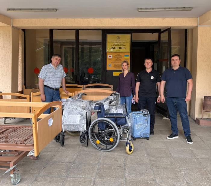 За ініціативи ректора Харківського національного університету внутрішніх справ Валерія Сокуренка та безпосереднього сприяння завідувача науково-дослідної лабораторії з проблем психологічного забезпечення правоохоронної діяльності Олексія Сердюка, начальника відділу міжнародного поліцейського співробітництва ГУНП в Харківській області Василя Гайчука та голови депутатської групи «Відновлення України» в Харківській обласній раді Сергія Гладкоскока до Комунального некомерційного підприємства Харківської обласної ради «Обласний центр паліативної медицини "Хоспіс"» було передано функціональні ліжка з електроприводом, механічні функціональні ліжка, інвалідні візки, ходунки, кисневий концентратор, медичну техніку тощо. Гуманітарний вантаж надійшов від німецького народу через організацію Ruricher Hilfswerk-OST e.V за сприяння Алети Вебер і Соломії Рожко. Директорка лікувального закладу Ірина Лугова висловила вдячність за надану допомогу, яка здатна суттєво підвищити якість життя, полегшити симптоми та зменшити страждання, спричинені серйозними хворобами у мешканців Харківщини.