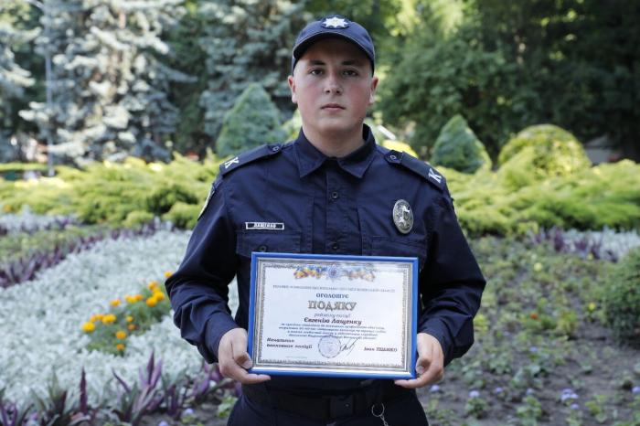 Начальник Головного управління поліції у Вінницькій області Іван Іщенко відзначив курсанта факультету № 2 Харківського національного університету внутрішніх справ рядового поліції Євгенія Лащенка за оперативні дії під час затримання злочинця по гарячих слідах. Він вручив йому Подяку за сумлінне ставлення до виконання професійного обов’язку, особистий внесок у забезпечення службової діяльності Національної поліції Вінницької області.