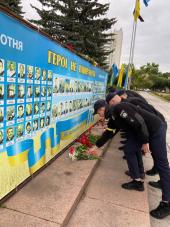 Керівництво та курсанти факультету № 1 Харківського національного університету внутрішніх справ вшанували пам’ять героїв і поклали квіти до Обеліску воїнам, які загинули за вільну і незалежну Україну.