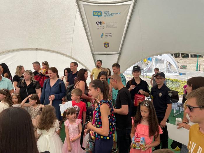Напередодні Дня Конституції України курсанти третього курсу факультету № 1 Харківського національного університету внутрішніх справ разом із представниками Благодійного фонду «SOS: Штаб громадянської оборони» провели розважальні заходи для дітей-переселенців і маленьких жителів міста. Курсанти влаштували для малечі цікаві конкурси і майстер-класи, настільні ігри та ігри-руханки.