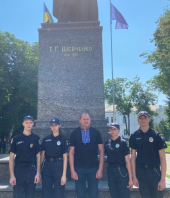 Курсанти Сумської філії ХНУВС взяли участь у міських заходах та поклали квіти до пам’ятника Тарасові Шевченку.