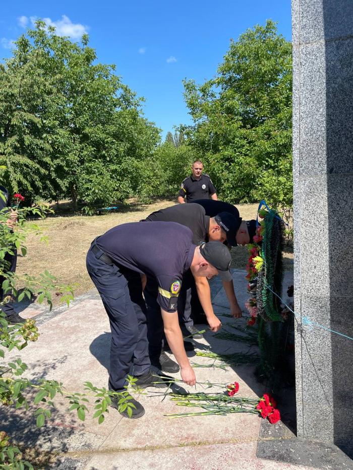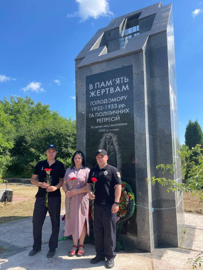 Працівники та здобувачі освіти факультету № 1 Харківського національного університету внутрішніх справ з нагоди відзначення 26-ї річниці Конституції України поклали квіти до пам’ятного знаку «В пам'ять жертвам голодомору 1932–1933 рр. та політичних репресій».