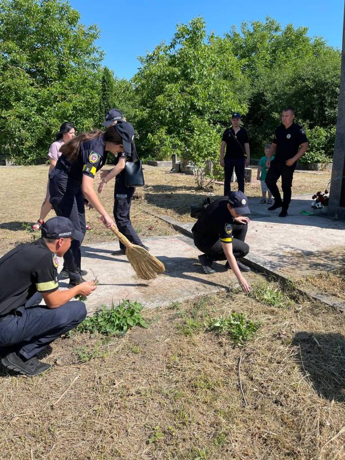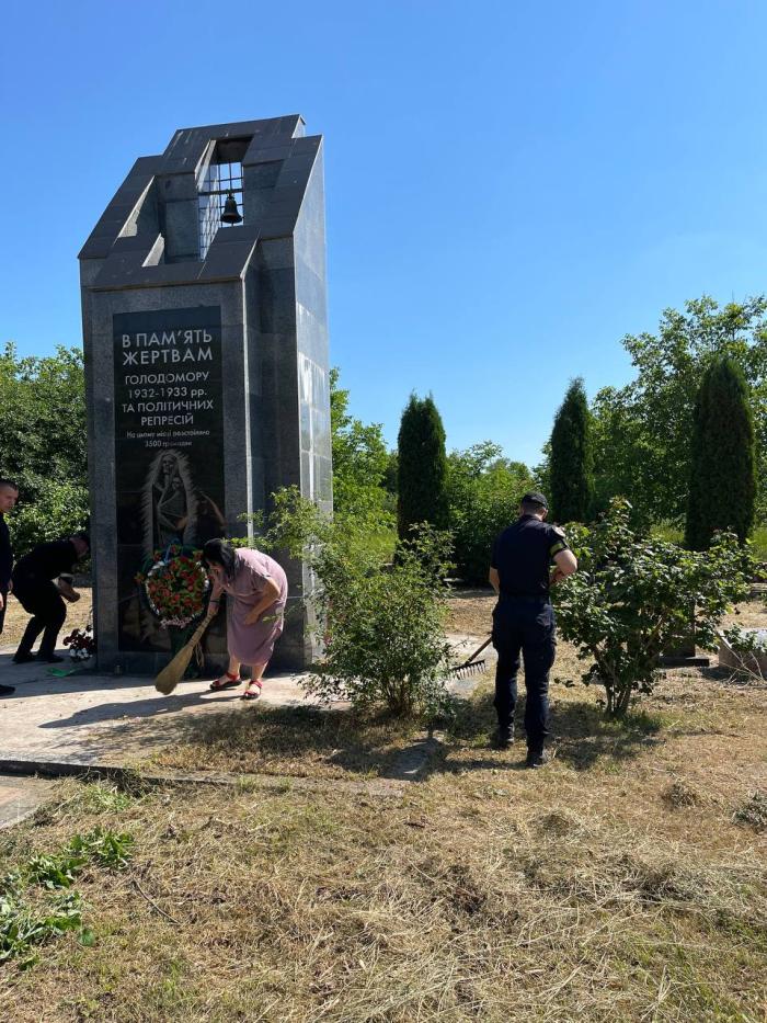Перед покладанням квітів особовим складом університету проведено прибирання прилеглої території біля пам’ятного знаку.