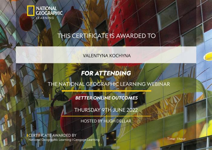 Завідувачка кафедри іноземних мов факультету № 4 ХНУВС Олена Статівка та викладачі цієї ж кафедри Валентина Почуєва, Любов Русанова, Валентина Кочина, Лариса Сазанова, Олег Гончарук та Артем Білоусов взяли участь у міжнародному онлайн-вебінарі від National Geographic Learning. Були розглянуті приклади застосування інноваційних технологій викладання іноземних мов у світовій практиці: дієві варіанти реалізації різноманітних підходів до повторення та узагальнення мовного матеріалу; стратегія циклічного повторення – поєднання відпрацювання нового матеріалу та вже знайомого; варіанти консолідації мовного матеріалу, що мотивують та сприяють осмисленому засвоєнню; вміння ефективно організовувати етапи заняття та забезпечувати можливість продукувати цільовий мовний матеріал.