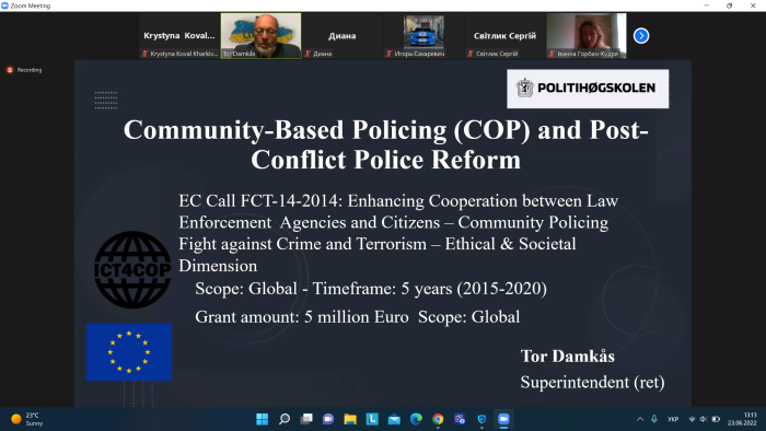 Під час вебінарів лектори коледжу надали корисну інформацію щодо європейських механізмів запобігання та протидії поширенню наркотиків, традиційних та інноваційних реформ поліції, орієнтованих на громаду, особливостей проведення опитування та анкетування у різних ситуаціях.