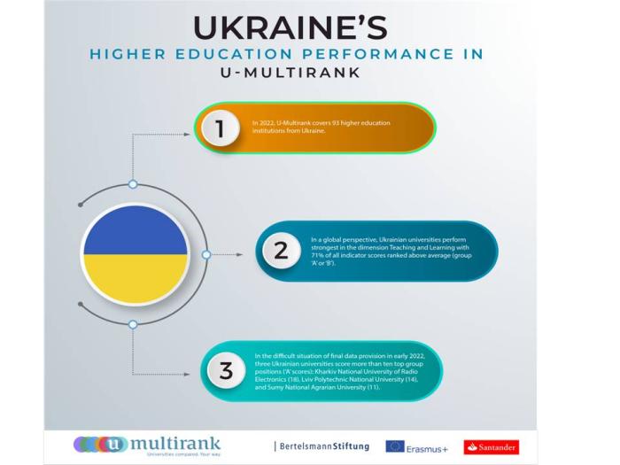 Рейтинг «U-Multirank–2022 World University Rankings» визначає кращі університети Європи та світу, проводиться під егідою Європейської комісії та використовує практичний інструментарій для аналізу даних за всіма основними напрямками діяльності освітніх закладів.