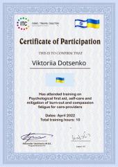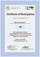 Під час навчання вони набули знань і навичок із надання першої психологічної допомоги та самодопомоги, заснованої на сучасних принципах кризового консультування та допомоги людям, які пережили травматичні події, набули навичок застосування засобів і прийомів зниження впливу травматичної події на якість життя людини.
