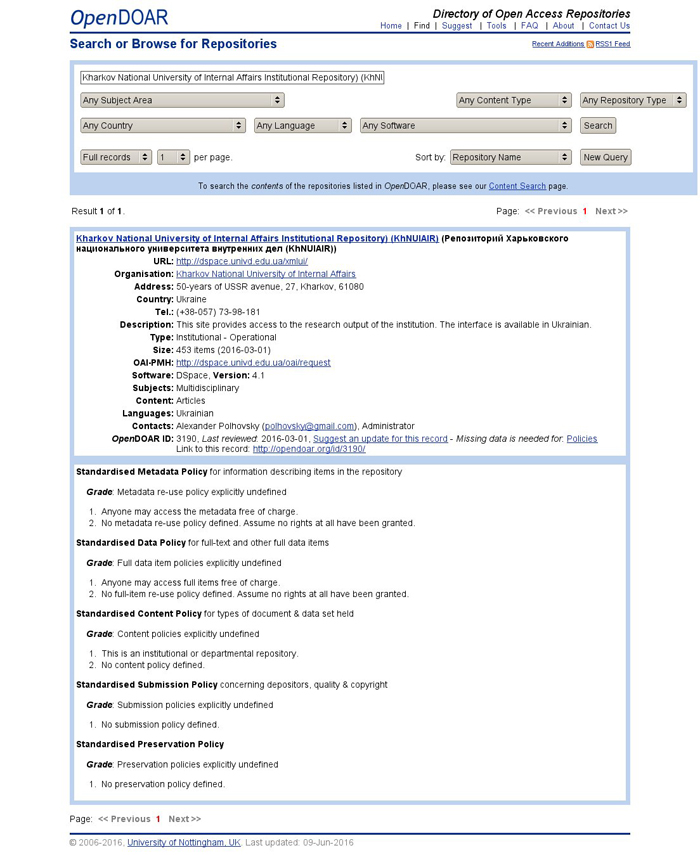 Репозиторій KhNUIAIR постійно індексується Google, Google Scholar, українським харвестром, OpenAIR, Registry of Open Access Repositories, OpenDOAR, що сприяє підвищенню рейтингу ХНУВС у світовому рейтингу вишів.
