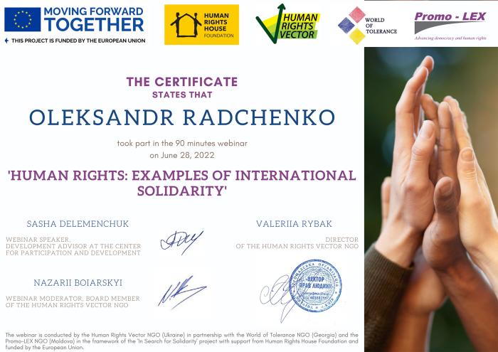 У межах конструктивної дискусії під час вебінару обговорено історію та найвидатніші приклади міжнародної солідарності, сучасні рухи солідарності, а також їхню роль у контексті глобальної безпеки, миру та правозахисту.