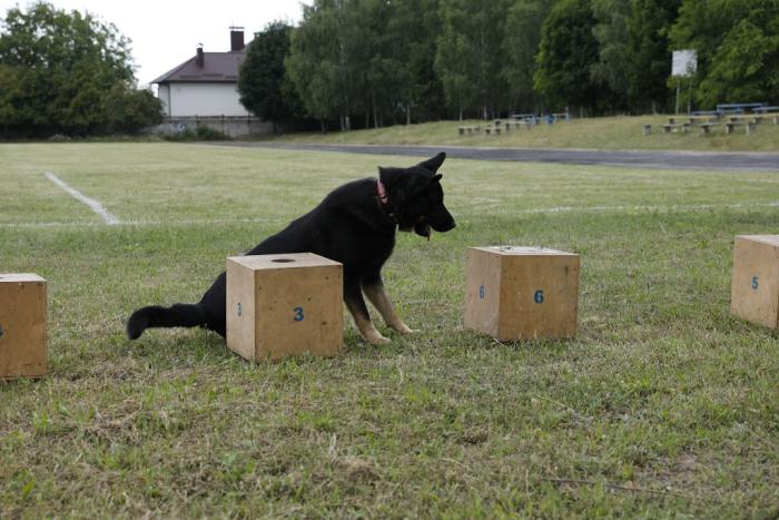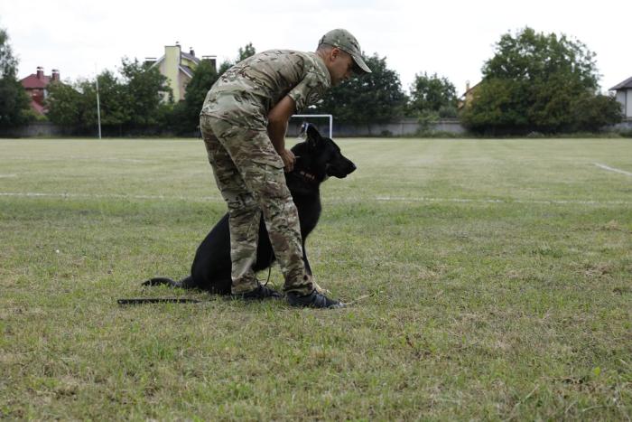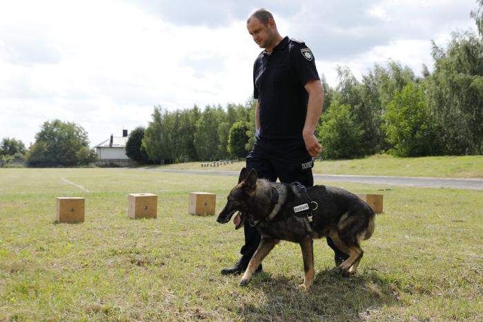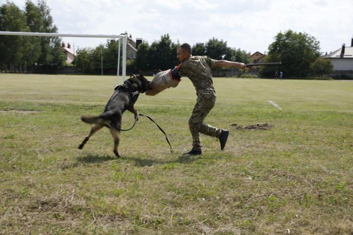 Відбулися також і показові виступи кінологів з чотирилапими помічниками: затримання умовного злочинця (фігуранта), вибірка речі, виявлення заборонених речовин.