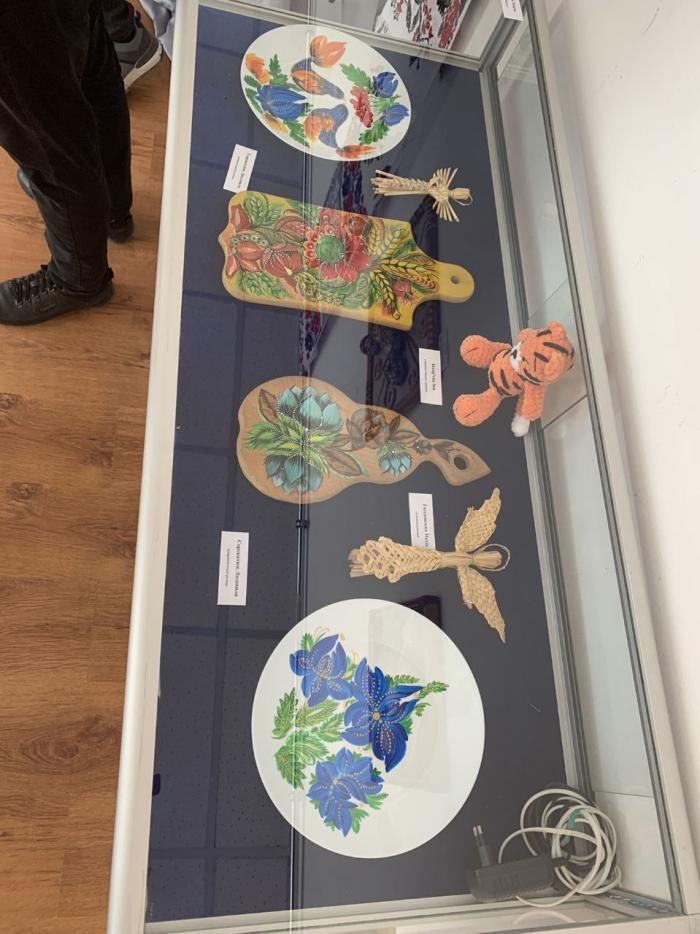 Курсанти ознайомилися з представленими роботами майстрів, виконані різними матеріалами у таких техніках, як писанкарство, вишивка, в’язання, народна лялька, розписи, аплікація та плетіння із соломки.