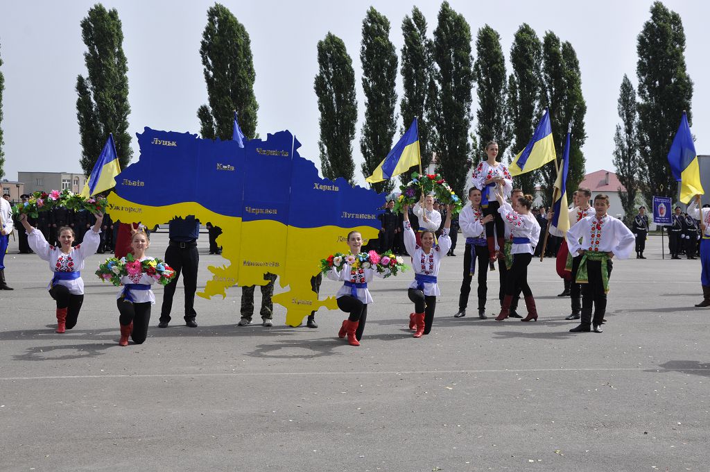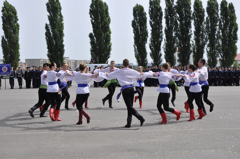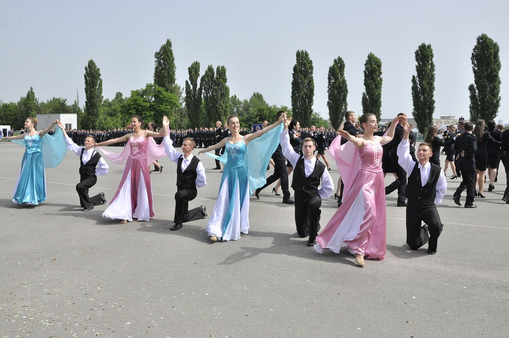 Завершились урочисті заходи спортивно-хореографічною композицією «Україна» у виконанні учасників художньої самодіяльності університету, виступом підрозділу барабанщиць і лейтенантським вальсом у виконанні випускників.