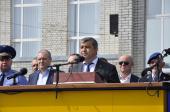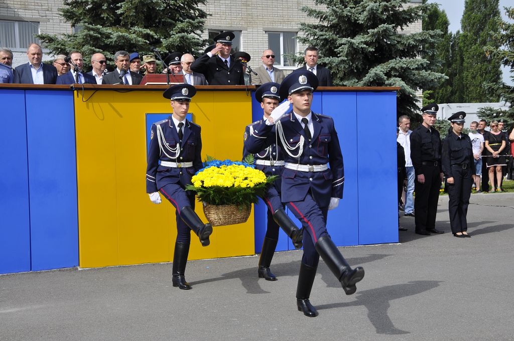 З напутніми словами до майбутніх правоохоронців звернувся голова Харківської облдержадміністрації Ігор Райнін. Він передав вітання від Президента України Петра Порошенка та Міністра внутрішніх справ Арсена Авакова. Звертаючись до випускників, Ігор Райнін зазначив: «Обравши професію правоохоронця, ви показали свою активну громадську позицію і стали на гідний поваги шлях – шлях захисту прав і свобод людини. У нелегкий для країни час, коли відбувається боротьба українського народу за її цілісність та незалежність, саме працівник поліції є гарантом стабільності та публічної безпеки. Ви – обличчя української поліції. Ваш особистий приклад і професійна компетентність формуватимуть повагу до закону та зміцнюватимуть віру громадян у справедливість».
