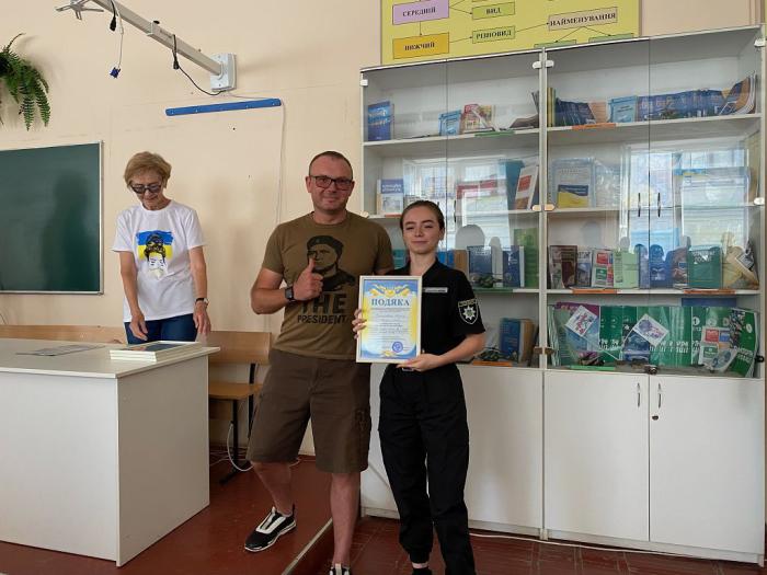 Голова організації вручив подяки курсанткам факультету № 4 Аліні Котелевець, Оксані Саловій, Єлизаветі Сенченко та Єлизаветі Кузенкиній, які брали активну участь у плетінні маскувальних сіток для захисників України. Голова організації подякував керівництву університету і факультету за патріотичне виховання молоді, відповідальну громадянську позицію та побажав успіхів у навчальній та подальшій волонтерській діяльності.